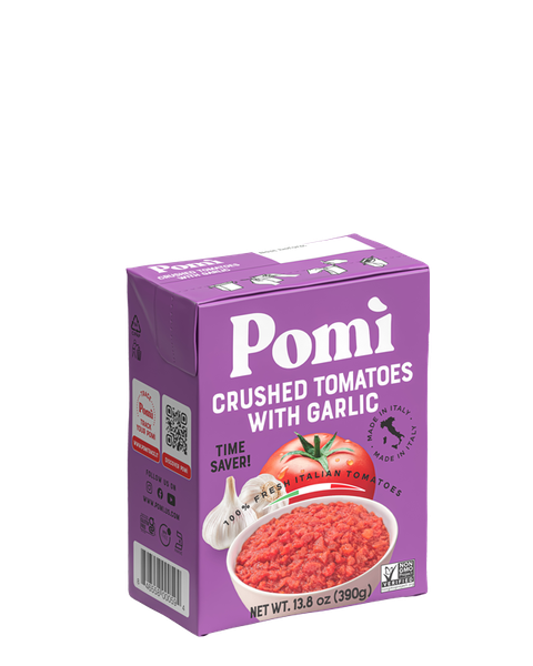 The convenient Pomì Crushed Tomato Sauce Starter packs you already know and LOVE are now available in Crushed Tomatoes with Garlic! This line of 13.8 oz resealable products is reinventing convenience by combining the natural quality of garlic with our chunky blend of rich Italian Crushed Tomatoes. With fragrant garlic already included, this time-saving secret weapon makes all your favorite recipes with ease: sauces, stews, curries, soups, dips, casseroles- you name it!